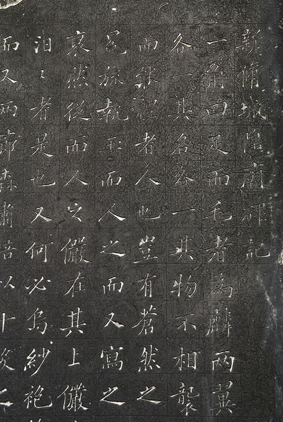 在碑文的书写上,板桥表现出了少有的恭敬与严谨,其时,他的“六分半书”已达炉火纯青之境,而这种带有隶意的字体,则可视作郑板桥晚年唯一传世的正楷佳作。清光绪年间陈恒庆所撰的《重修城隍庙碑记》中称赞说:“(郑板桥)碑文则光矞陆离,书则挺拔奇古,墨拓一帧值数千,海内争购之,几乎洛阳纸贵矣。”