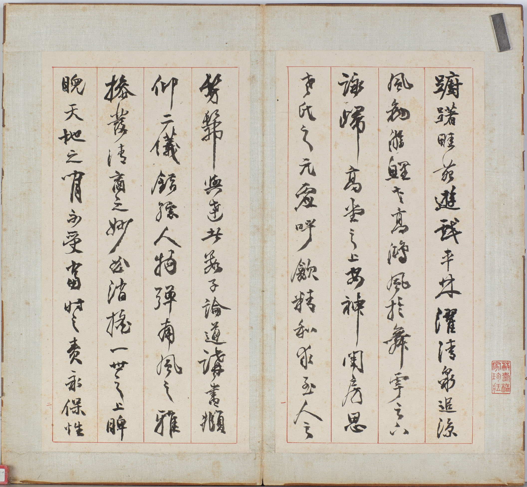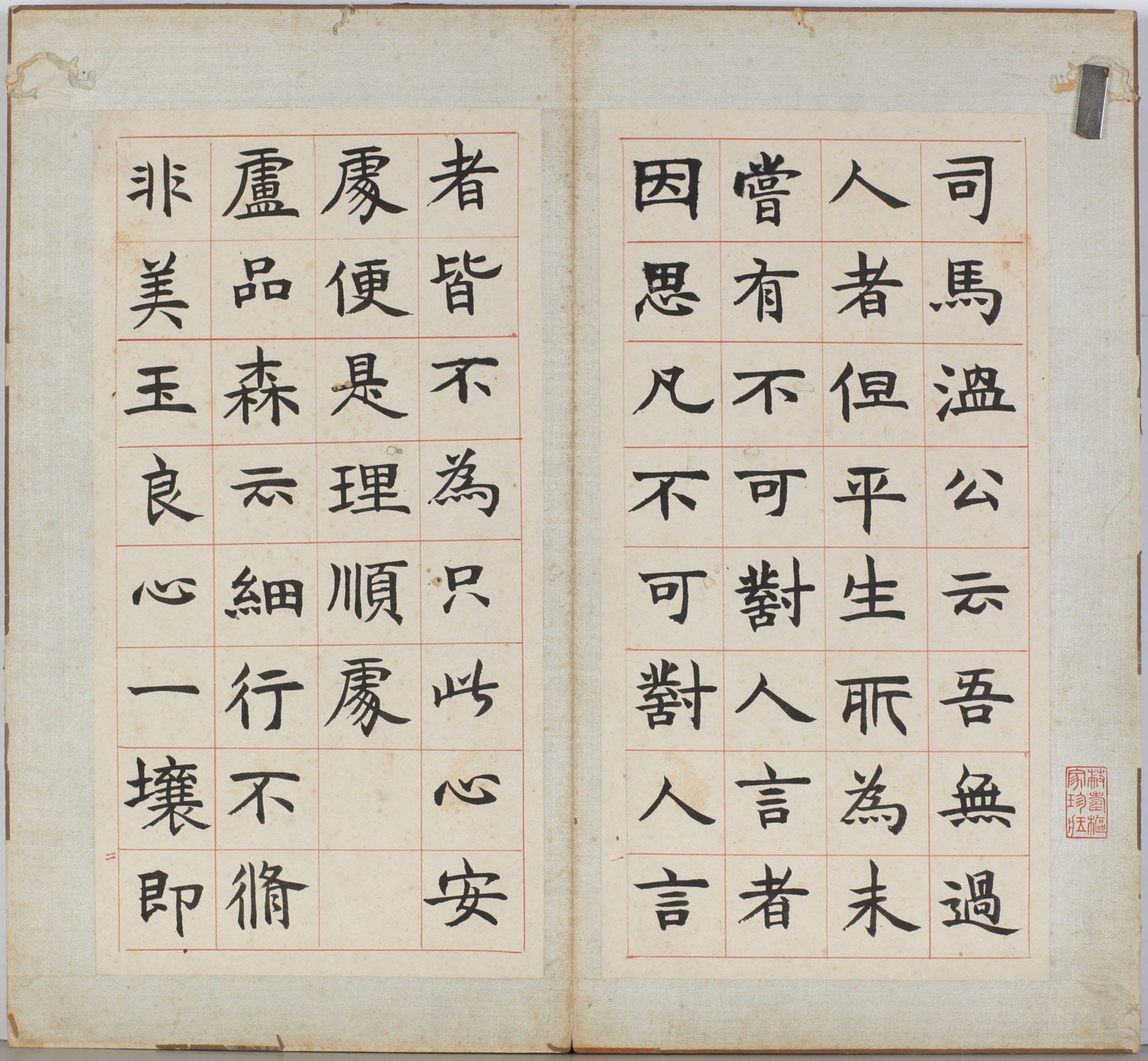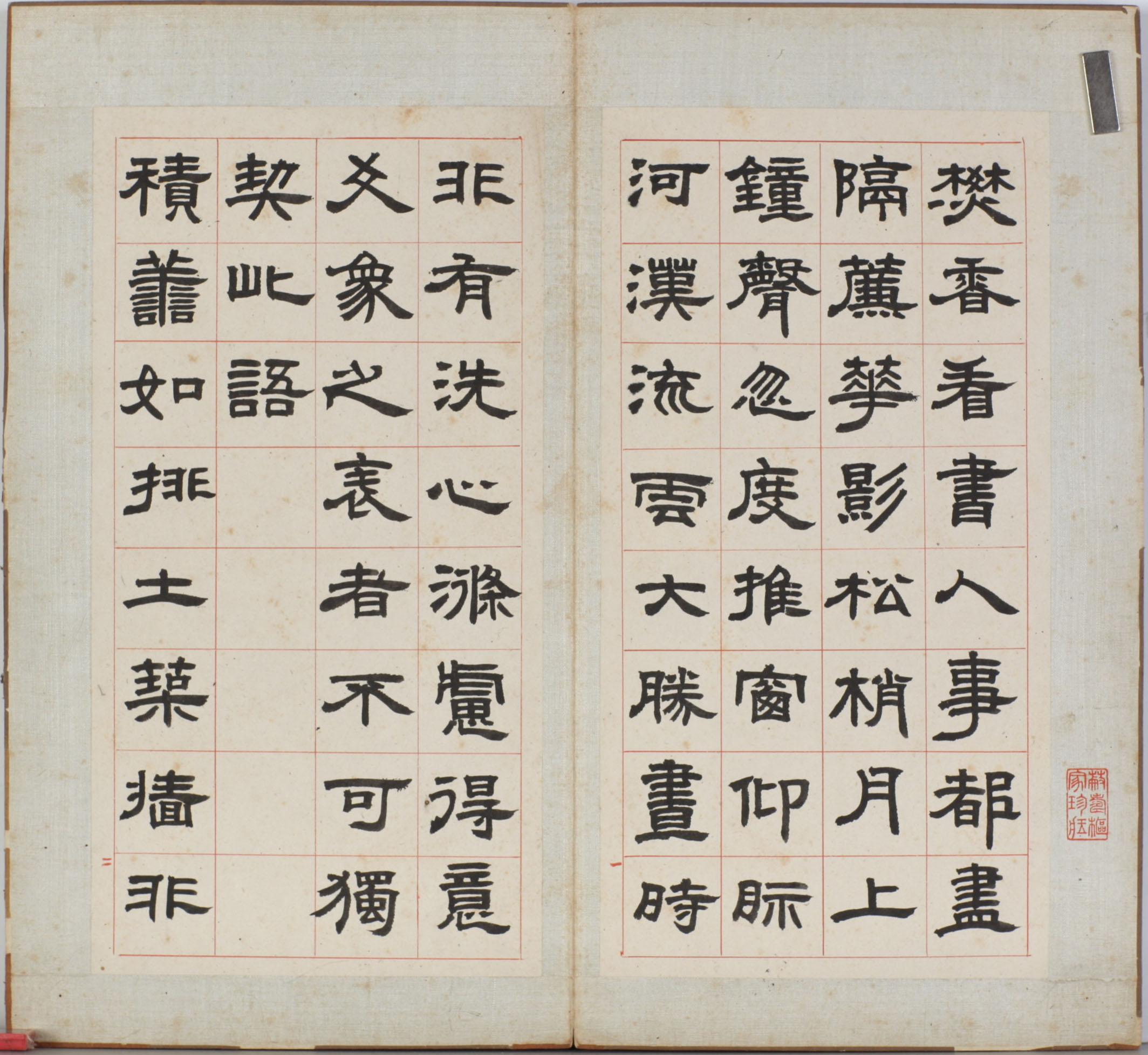 此《四体书册之篆书八闼册》为邓石如篆书册页作品,现藏于无锡博物院。虽无明确年款,但学界据其风格判断为其中晚年之作。此作以长锋羊毫书写,内容为处世格言,其中节录《小窗幽记》《围炉夜话》《菜根谭》等篇中一些修身养性的哲理文句,如“内存精明,外示浑厚”“风来疏竹,风过而竹不留声”等,邓石如讲这些经典名句连缀成文,既具文学性,又彰显了邓石如“书以载道”的创作理念。
