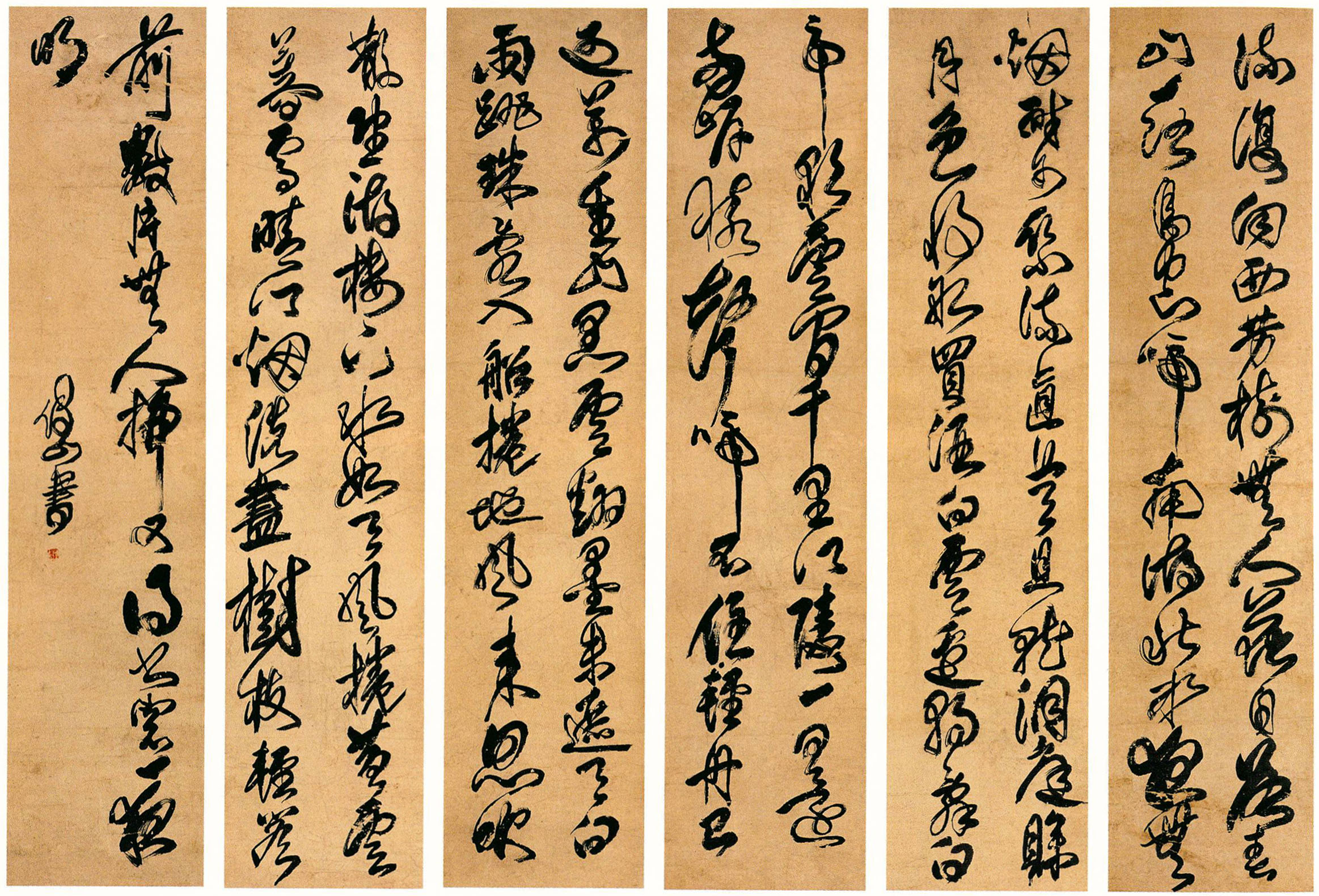 傅山《独远阁录唐宋诗九首十二条屏》纸本草书 161.6×37.3cm 四川博物院藏