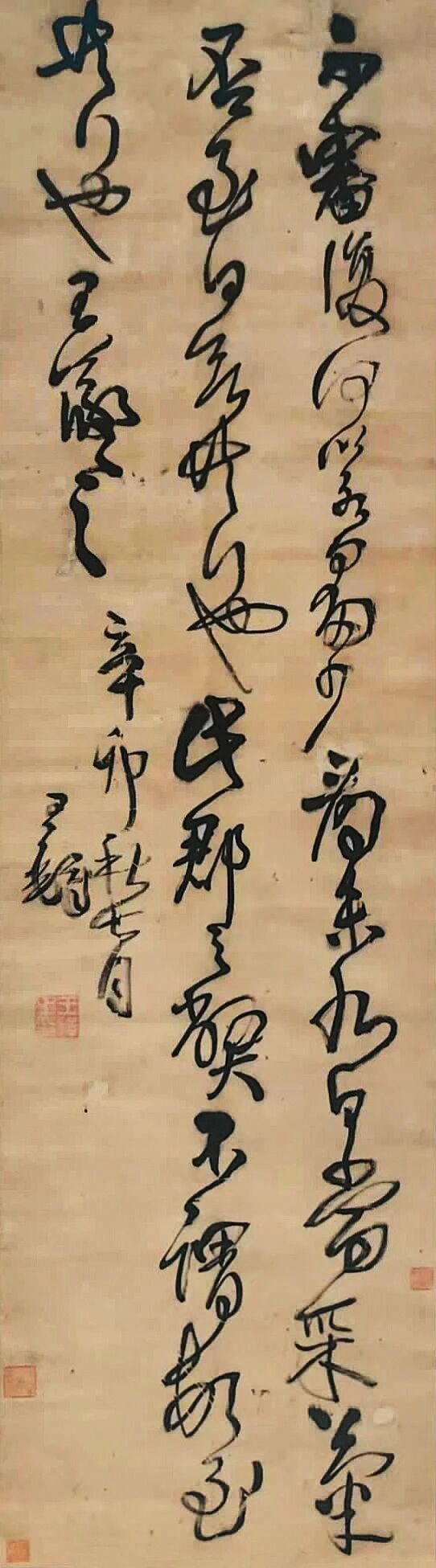 明末清初的中国书坛,擅写连绵大草,一笔落纸连写数字,而在书法史上最有影响者,当推王铎与傅山二人。从中国历史上看,唐代张旭、怀素二家,以连绵大草为一代圣手。此后继者式微,宋、明如黄山谷、祝枝山等虽亦作草书,然其主功或在于行书,或不能多字连绵而写。直至明末清初,始有王铎、傅山二家,可与旭、素,前后辉映。中国大草,自旭、素首创高峰,时隔八百年后,方有王铎、傅山使大草再度复兴。王、傅之后,连绵大草至今竟无继响。大草之难可以想见。因而对于收藏研究界来说,王铎、傅山真迹中最可珍视的当然还是他俩的连绵大草。
