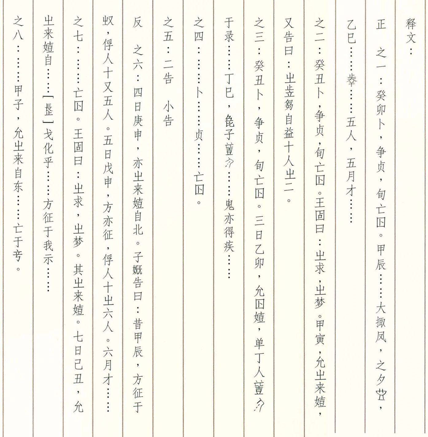 本片ト骨亦属罗振玉旧藏著名大版之,著录于《殷墟书契菁华》,惜有残损,尤其是反面几条叙辞、命辞残缺。诸条贞卜中,除战争侵害的实录外,最为重要的是之一条“大骤风”的记录,是殷商气象史上极为重要的史料。