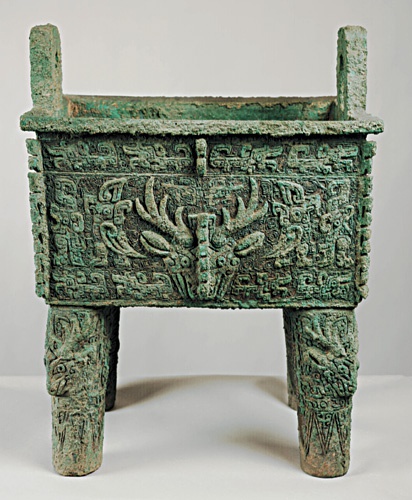 鹿方鼎 台北史语所藏 典藏号:R001751 年代:商代晚期(殷虚) 尺寸:通高60.9cm、长51.4cm、宽37.4cm、重60.02公斤 出土地:河南省安阳县侯家庄西北冈1004号商王大墓 材质:青铜