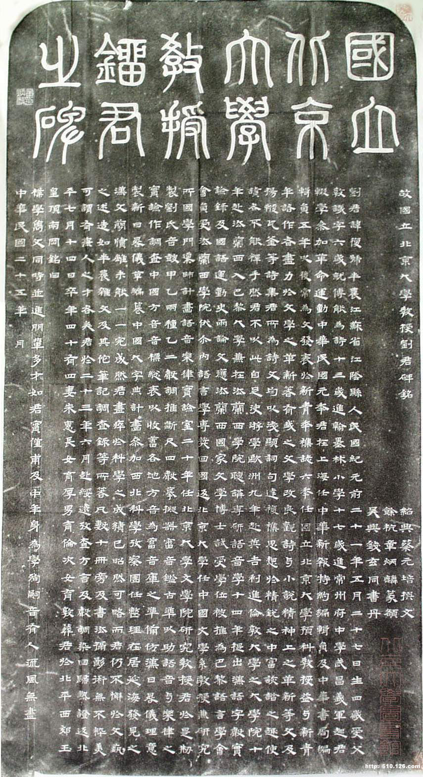 章炳麟《国立北京大学教授刘君墓志》墨拓隶书 (可嘉提供)