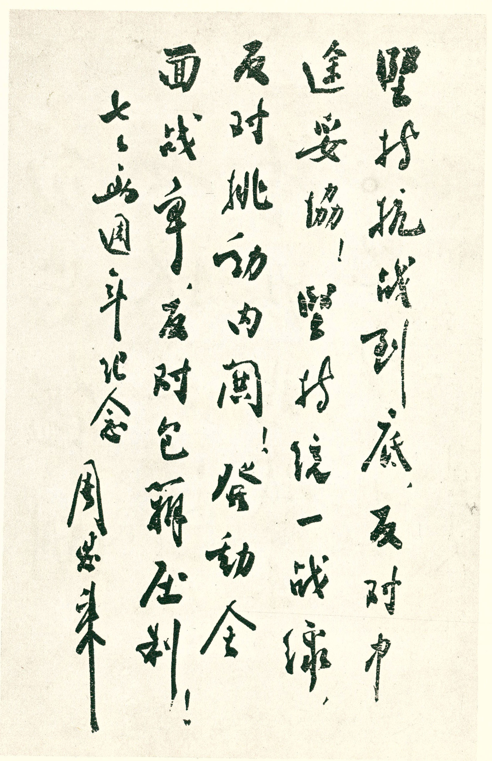 为纪念抗战两周年给《新华日报》题词(1939年7月7日)