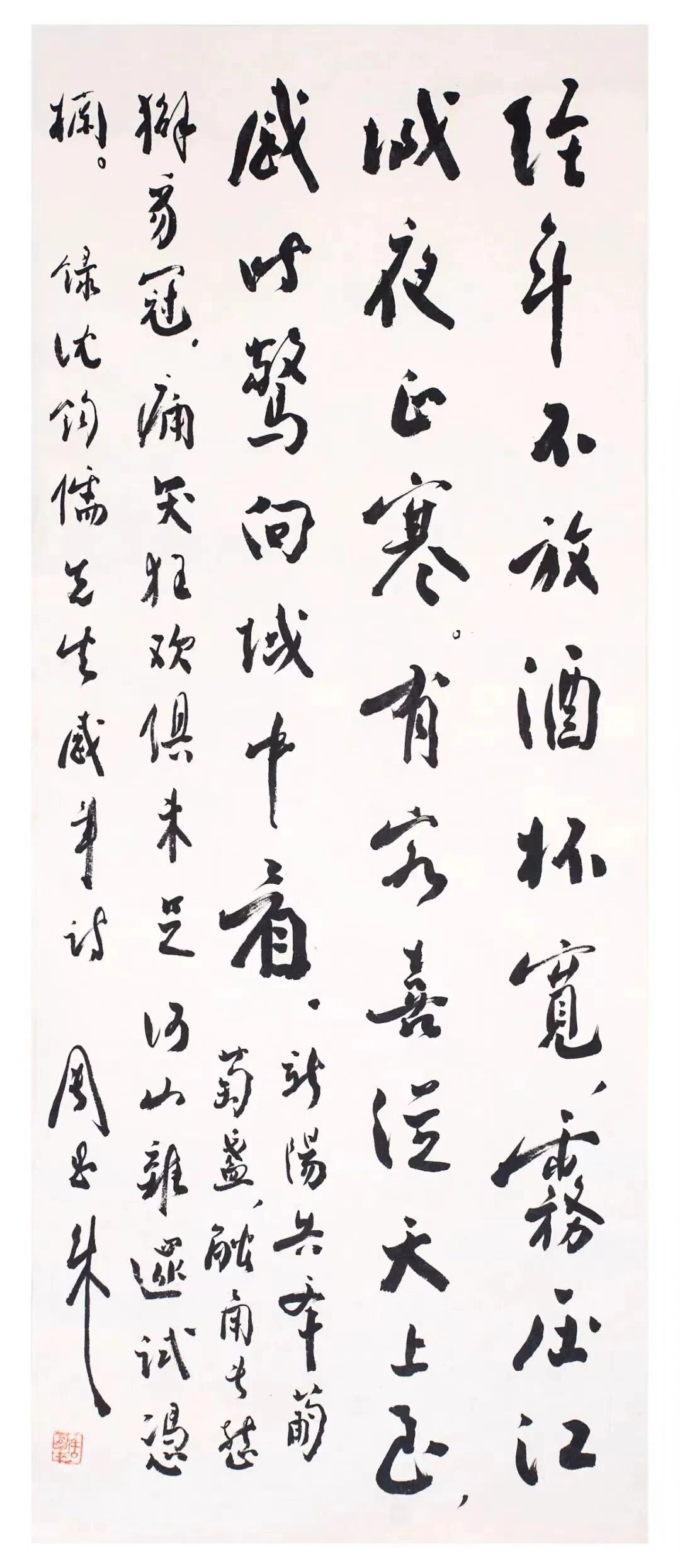 释文:经年不放酒杯宽,雾压山城夜正寒。