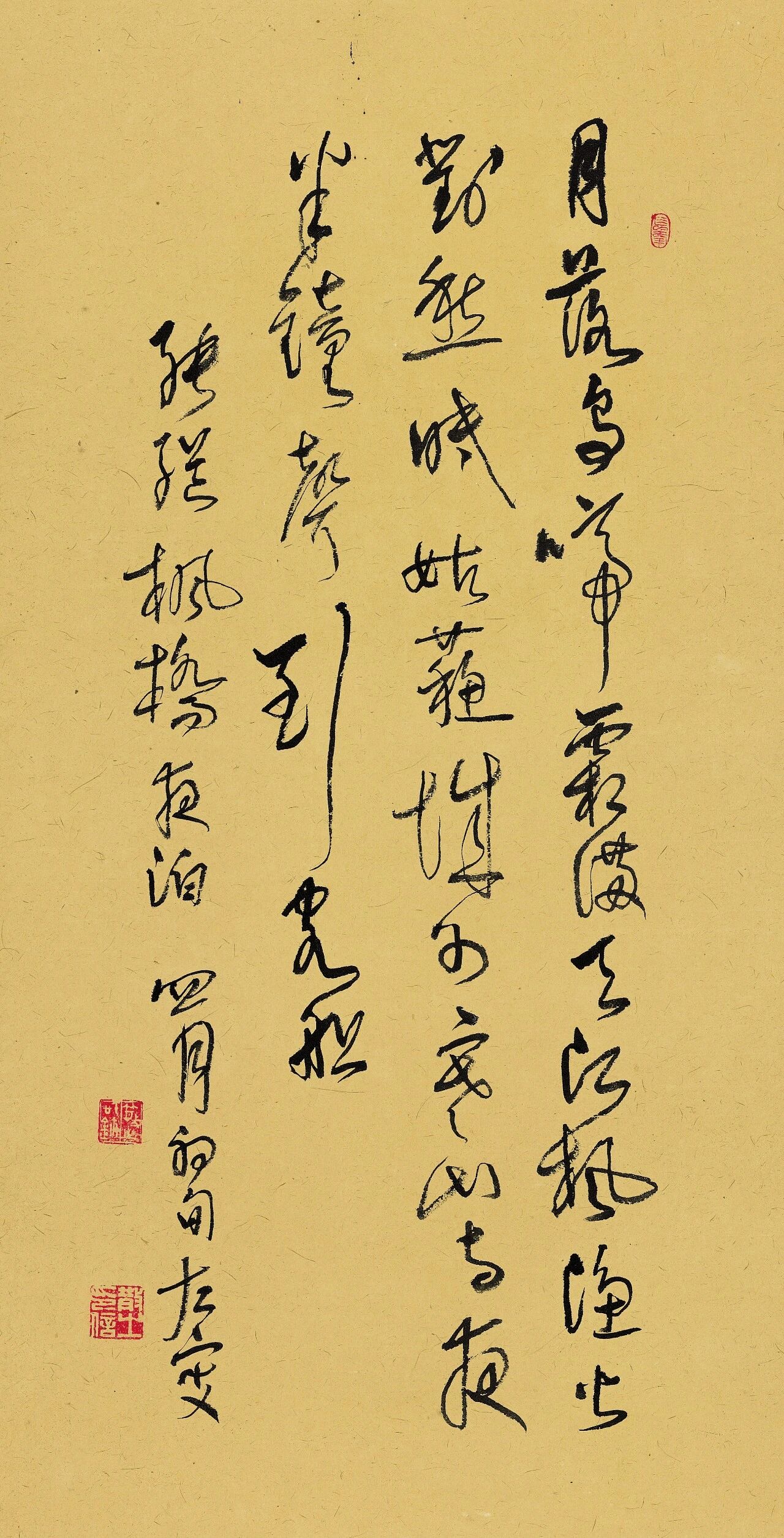 林散之《行书张继枫桥夜泊诗轴》 86×44.5cm 60年代 宋玉麟食砚斋藏 释文:月落乌啼霜满天,江枫渔火对愁眠,姑苏城外寒山寺,夜半钟声到客船。 款署:张继枫桥夜泊,四月初旬,左叟。 钤印:长年(朱文)、散之私玺(白文)、散之印信(白文)