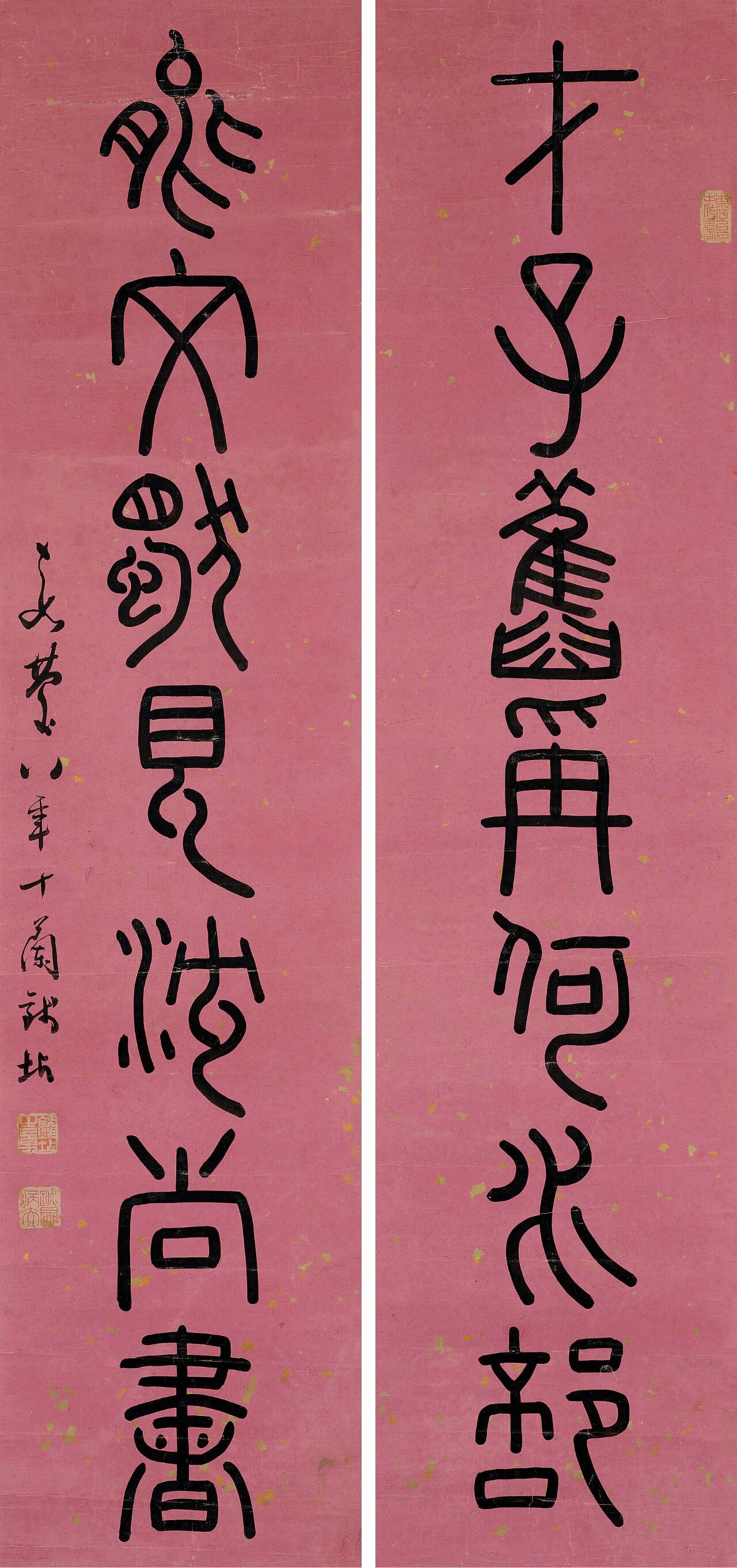 钱坫《篆书“才子能文”七言联》洒金纸本 125×29cm×2 1803年 西泠拍卖2024秋拍