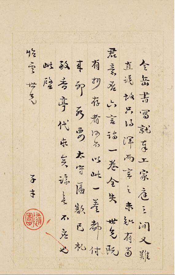 第三通释文:付来时扇一柄,暂存。昨付来古扇,扇柄仍璧,尊齐待古人复生,然后赠之,何如?玉器此时难讲,来物二件,匪我思存,亦复送还。足下虽不必弃之于荒烟蔓草之中,亦只可供之为竹马儿童之用,磁器一件已召补锅匠巧为补之,尚未见覆,亦未知其能否也?将来小女嫁时,或有零星俗物奉托,亦未可知此时不必硁硁然作朋友之先施也,一笑。如不能补,亦要送还,所谓磁器,毛不值一毫也。