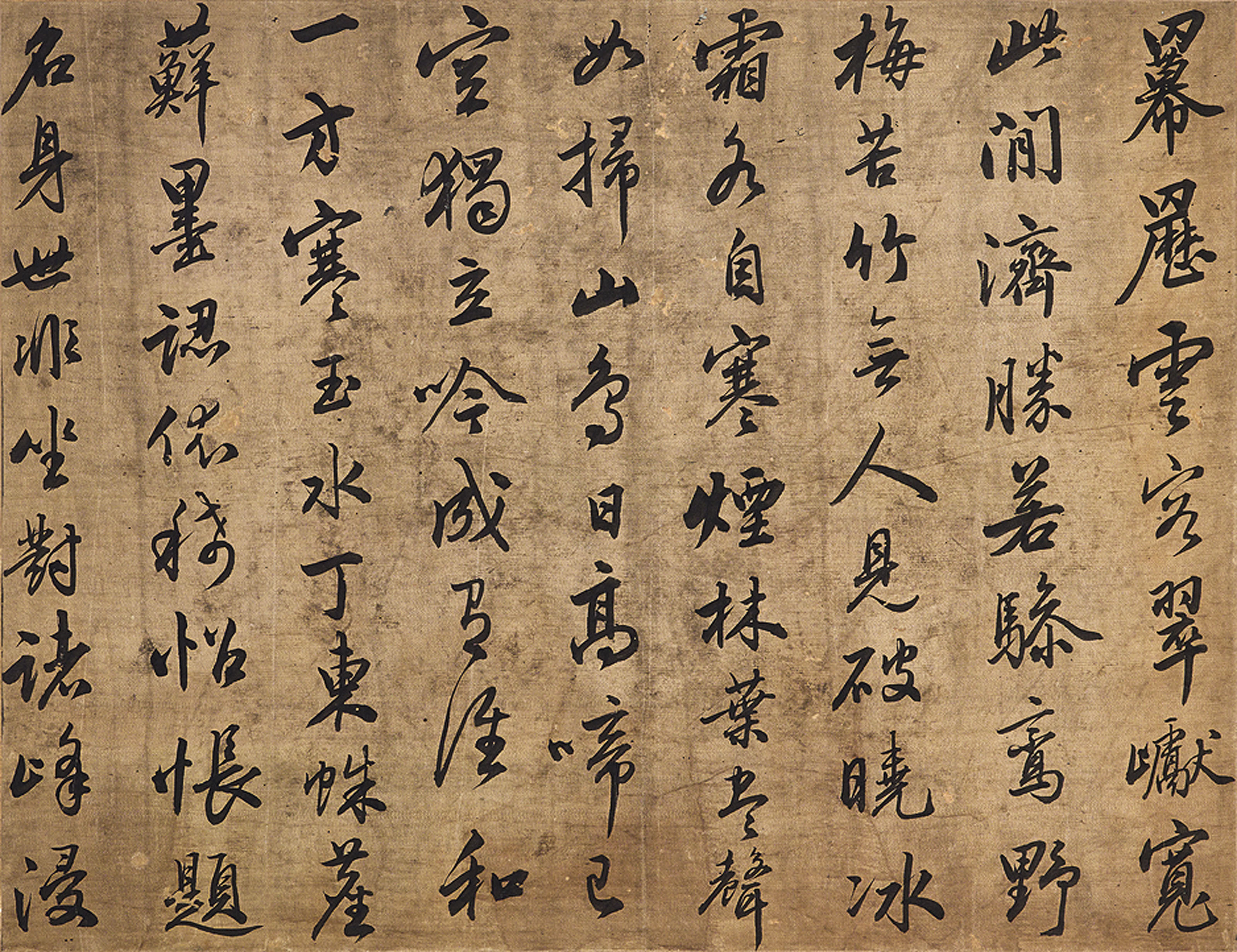 释文:羃历云容翠巘宽,此闲济胜若骖鸾。野梅苦竹无人见,破晓冰霜各寒。烟林叶尽声如扫,山鸟日高啼已空。独立吟成有谁和,一方寒玉水丁东。蛛尘藓墨认依稀,怊怅题名身世非。坐对诸峰浸