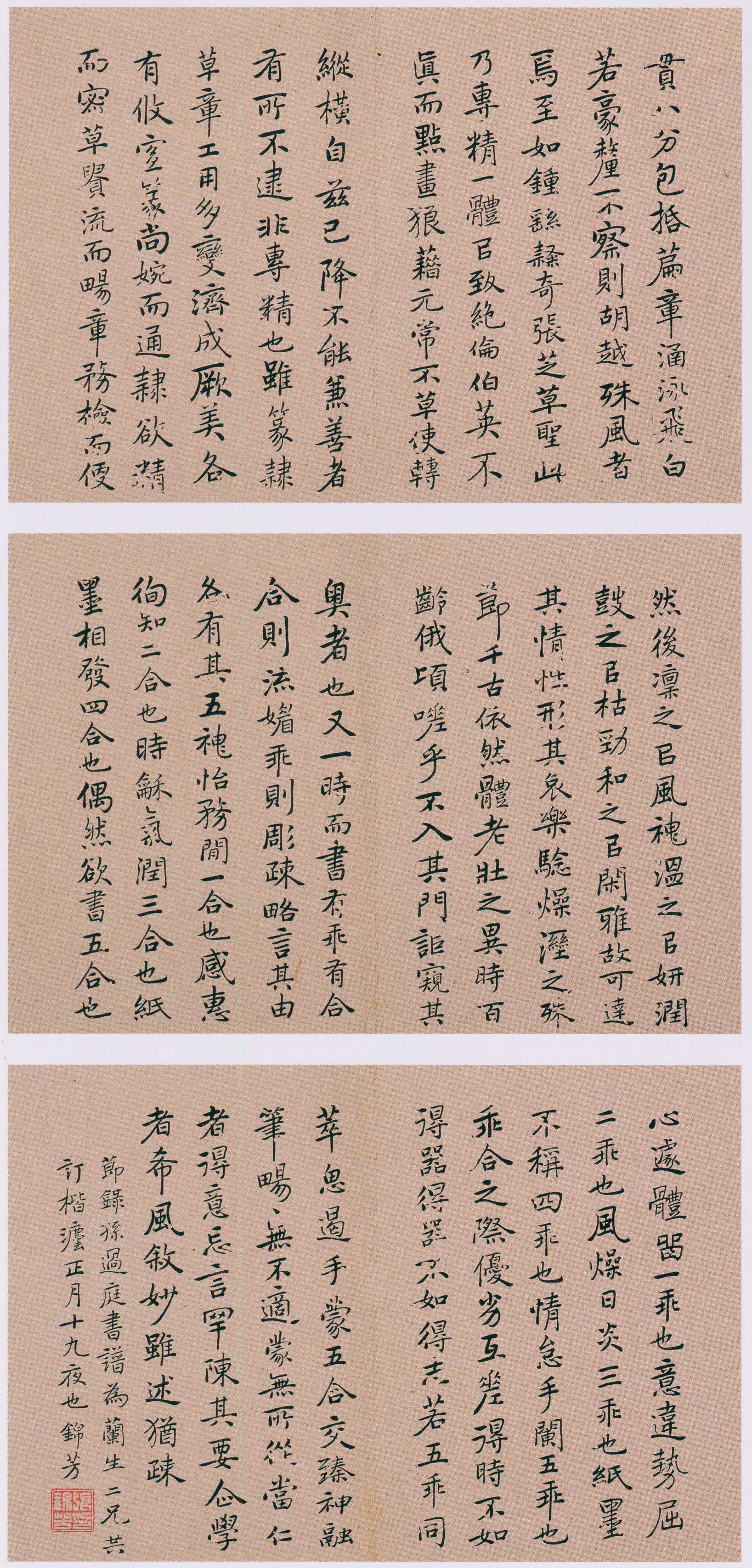题识:节录孙过庭《书谱》,为兰生二兄共订楷法。正月十九夜也。锦芳。