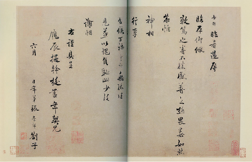 释文:孝祥昨者过辱临存,仰佩敦笃之眷,不胜感著之极。畏暑如焚,恭惟神相行李台候万福。孝祥无缘往见,益以愧负。驰此少致谢悃。右谨具呈,应辰提干校书年契兄。六月 日,年弟张孝祥剳子。