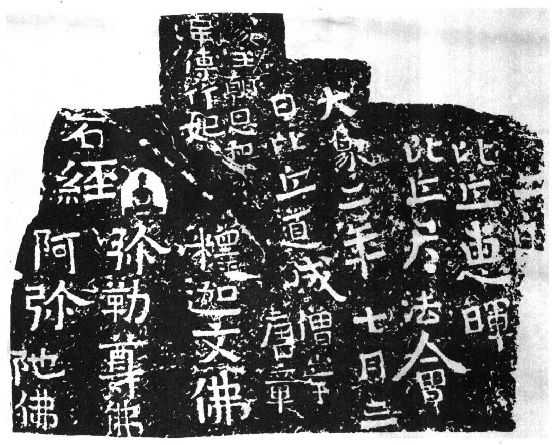 释文:二郎比丘惠晖,比丘尽法会。大象二年七月三日比丘道成。僧岸、唐岸、像主朝思和韦传竹妃。石经。释迦文佛、弥勒尊佛、阿弥陀佛。