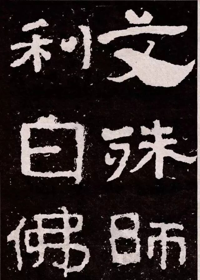 《文殊般若经》七行,行十四字,共九十八字。文起"文殊师利白佛言",终"无念无作故"。字径50厘米左右,隶书。上有"文殊般若"四大字,字径60厘米,隶书。
