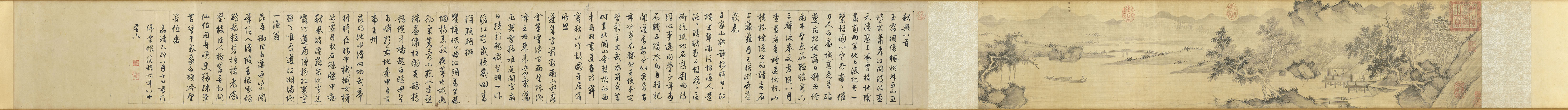 文徵明《溪山高逸图并草书秋兴八首卷》 画 绢本27.9x129.1cm 书 纸本 27.8x234cm 1555年 台北故宫博物院藏