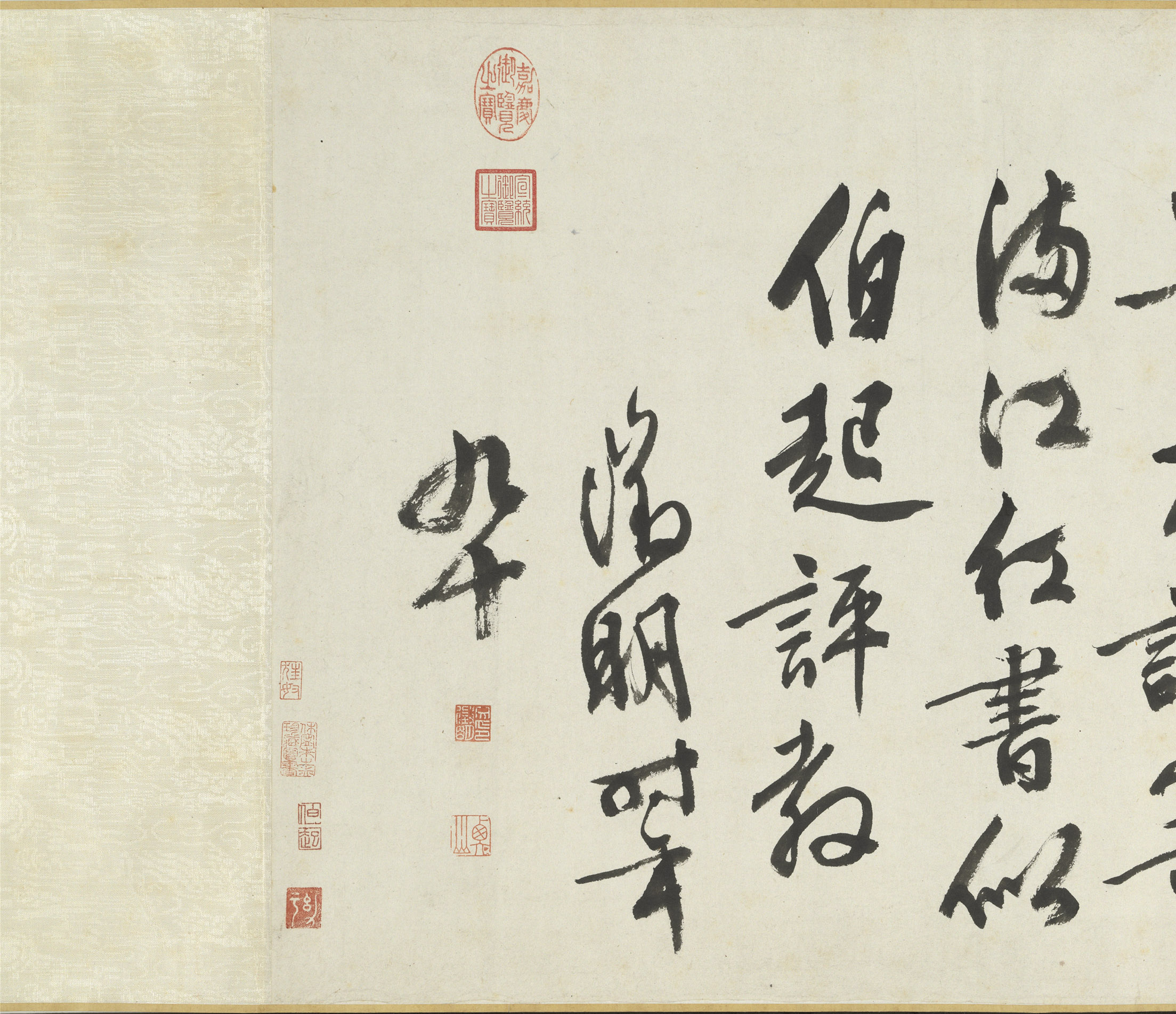 此卷文徵明为张凤翼(1527-1613)书此卷,依幅后跋文,知吴中沈氏掘地得高宗手勅石刻,文氏为此题词,薄罪秦桧而归本于高宗,可谓发千古独见之言!通篇大字行书,笔力遒劲,结字纵逸,为九十岁离世数日前所书,却毫无涣散之状。