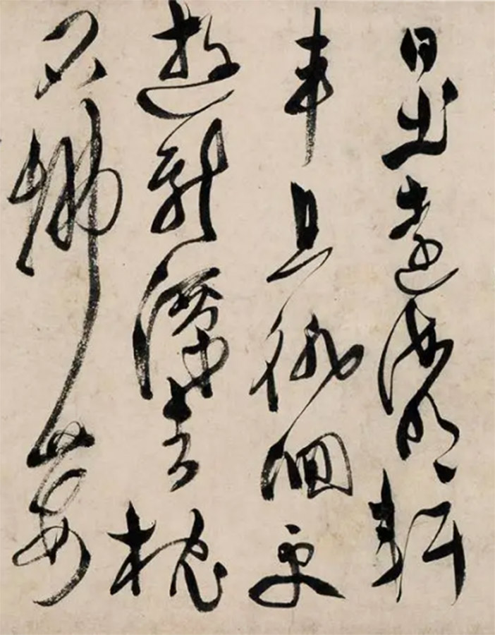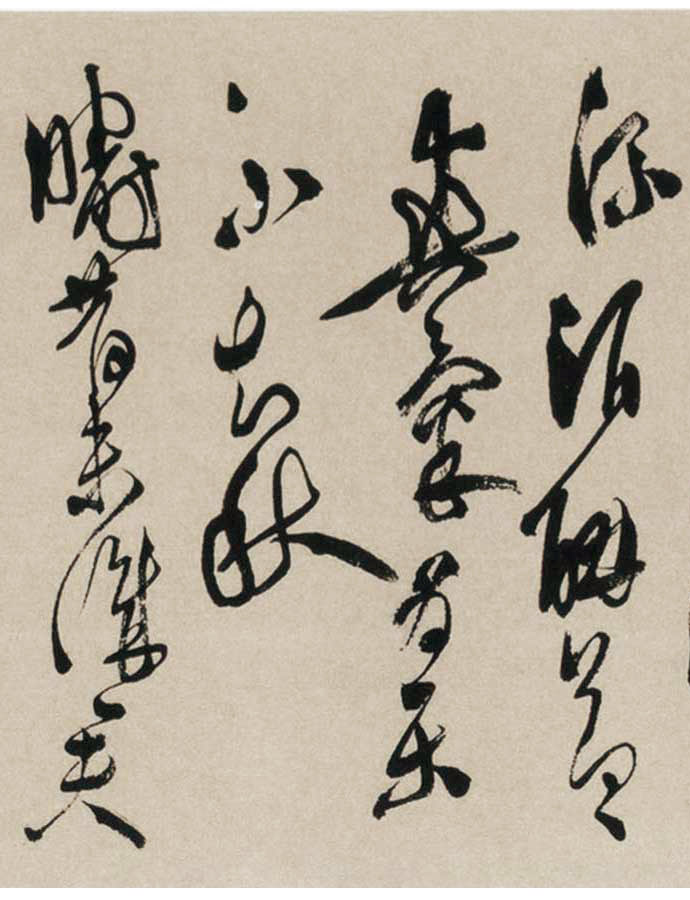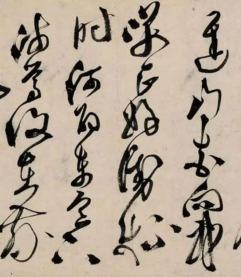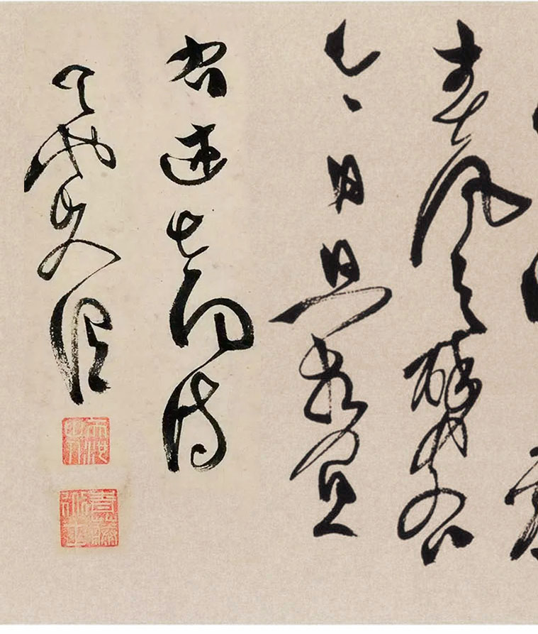 相应的,其章法虽似有安排,实一脉天真任自然。首段书写出入规矩,用笔沈着浑圆,飞动跳跃的笔法又有米芾的情趣,颇能代表徐渭的风格。如“苔”字的结体,“拂”的竖画拉伸,“使我”二字的穿插映带,无不显示出神来之趣。其后二段书写线条飘逸,盘纡缭绕,随处可见突出夸张而不失法度的结体,姿态奇伟,姿媚现于其间,古雅有情致。后段笔墨依然回环往复,映带牵连中不失厚重沈稳之味。整卷草书高超的用笔、丰富多变的结字技巧与苍润变幻的笔墨相间,如音乐旋律在作品中给人以情感的冲击;虽满篇点画狼藉,但笔画跌宕起伏从容不迫,字体大小对比、字形的偃仰欹侧极具变化,笔意奔放豪迈,有如狂风骤雨,渴骥奔泉,酣畅淋漓而又苍劲浑厚,飞扬恣肆而又不失法度,令人叹为观止。观徐渭之书,似观徐渭之际遇之坎坷。正如袁宏道所说:“强心铁骨,与夫一种磊块不平之气,字画之中宛宛可见。”